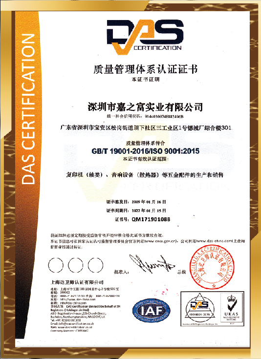 質(zhì)量管理體系認(rèn)證證書